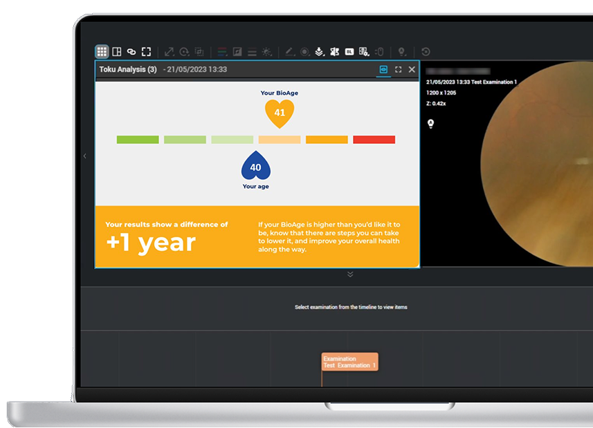 BioAge uses AI and deep learning technology to analyze the retinal images and return results within 30 seconds.